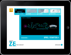 af.- Renault bietet für Besitzer des Apple iPad nun die kostenlose Applikation „Z.E. Elements“ an. In dieser Anwendung wird interessierten Zielgruppen das Engagement von Renault im Bereich der Elektromobilität spielend näher gebracht.
