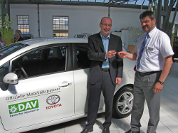 af.- Toyota ist bereits seit 2008 offizieller Mobilitätspartner des Deutschen Alpenverein e.V. (kurz DAV). Im Rahmen dieser Kooperation stellt der Hersteller dem Verein nun zwei Hybridfahrzeuge zur Verfügung. Die Übergabe an der Bundesgeschäftsstelle wurde von Verkaufsleiter Rainer Mattusch (Toyota Autohaus DIT München) durchgeführt.DAV Hauptgeschäftsführer Thomas Urban freut sich auf die besonders umweltverträglichen Modelle. Der Toyota Auris 1.8 Hybrid Life verbraucht gerade einmal 3,8 Liter/100km und kommt somit auf eine CO2 Emission von 89 g/km. Die Hybridmodelle stehen für Dienstfahrten der Mitarbeiter zur Verfügung.