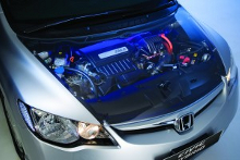 In die neue Generation der spritsparenden Wunderautos aus dem Land des Lächelns, reiht sich würdevoll der neue Honda Civic Hybrid ein. Wer den Wagen zum ersten Mal sieht, wird sich verwundert fragen, was an diesem Auto so besonders sein soll. Rein äußerlich kommt er so bieder daher wie Oma Käthe aus dem Nachbarhaus. Auch im Innenraum zeigt sich keine Spur von neuartiger Technik. Wäre da nicht ein kleines, fingerlanges Display neben dem Drehzahlmesser.