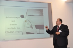 Auch Dirk Fräger, Geschäftsführer der FRÄGER GmbH, nahm an der Zusammenkunft teil und berichtete über die Gründung der Tochterfirma German-E-Cars GmbH. Mit dieser bezweckt er den weiteren Ausbau notwendiger Kompetenzen im Technologiefeld Elektromobilität und ist bestrebt, den neuen Markt zu entwickeln.