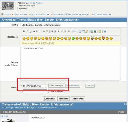 Heiko Englert antwortete auf Elektro Bike - Elmoto - Erfahrungswerte?